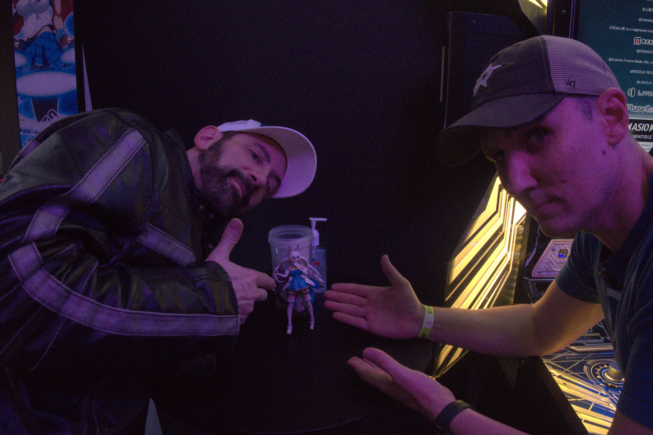 Hope nobody minds, but @SpoonNinja mentioned trying to get a photo where the heights were normalized but there really wasn't time (or lighting, or space) in the arcade to really pull that off 🤣 . May have been able to pull it off if I had a portable studio light and had an attendee help with getting the positioning correct.