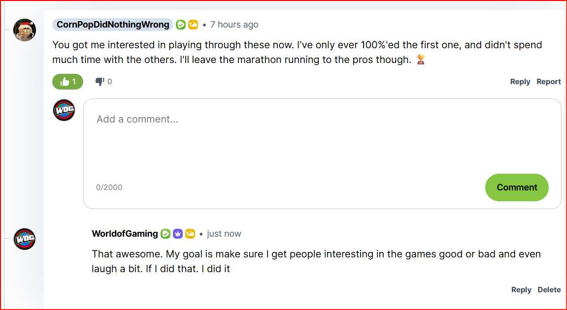 Comments like these. Make me smile. If I don't make you smile and make you interest in video games. I'm not doing my job.