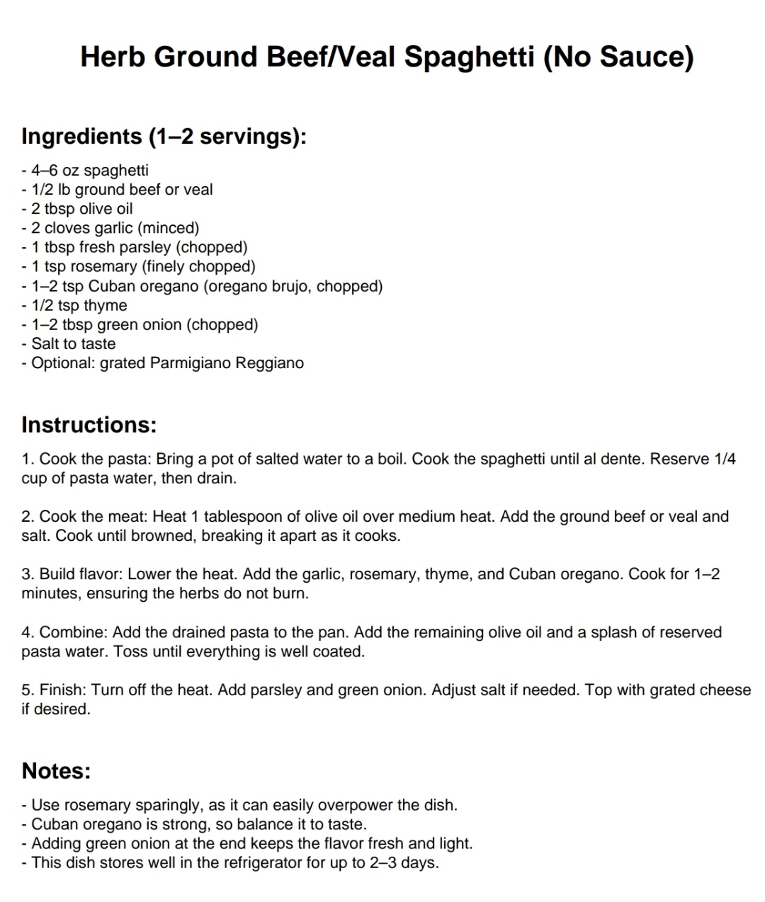 Due to my diet and some ongoing health considerations, I usually avoid pasta sauces unless I make them myself. So this past week, for meal prep, I kept things simple. I picked up fresh beef and veal, ground them myself, and put together this straightforward herb pasta using herbs from my garden.